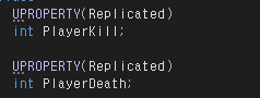 PlayerState가 리플리케이트 된다고 들었어서 PlayerState에 새로 만들어준 변수들도 자동으로 리플리케이트 되는 줄 알았는데, APlayerState의 일부 RepNotify변수들만 리플리케이트 되는 것이었다. 직접 RepNotify 프로퍼티로 선언해주니 해결되었다.