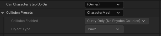 캐릭터 메시의 기본 프리셋은 Query Only와 Pawn으로 되어 있는데