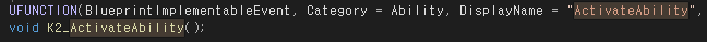 K2 접두어가 붙은 함수는 블루프린트와 C++ 모두에서 사용할 수 있다.