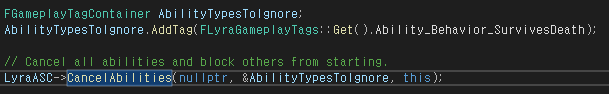 3. OnAbilityRemoved : 폰이 빙의 해제되거나 파괴되는 등의 이유로 ASC에서 어빌리티가 제거되려고 할 때 호출