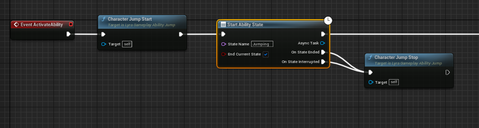 | ULyraGameplayAbility_Jump | 어빌리티 오너가 유효하고 로컬에서 제어되는 폰인지 확인하면서 폰의 캐릭터 무브먼트 컴포넌트(Character Movement Component)에 Jump 및 StopJumping 입력을 트리거하는 함수 기능을 제공합니다. |