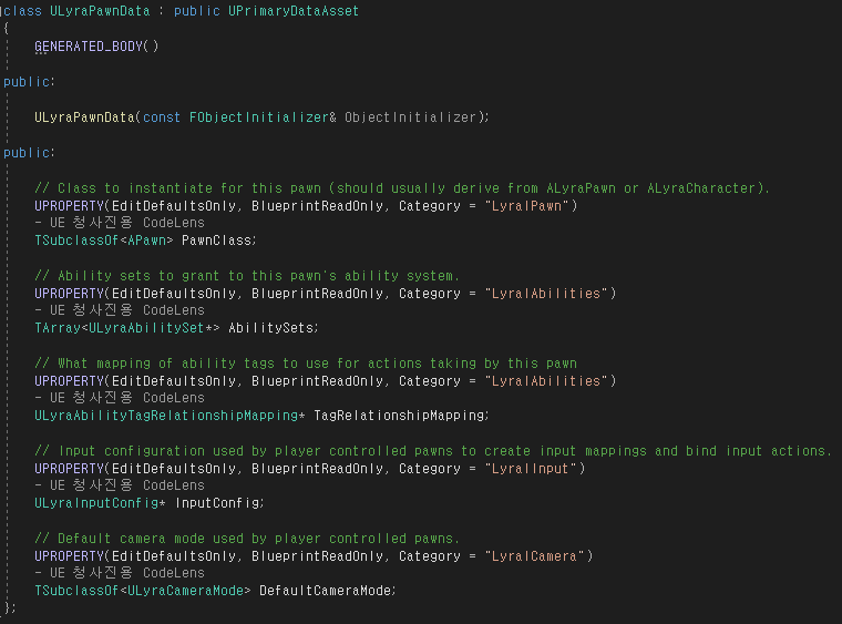 LyraPawnData (데이터 애셋)