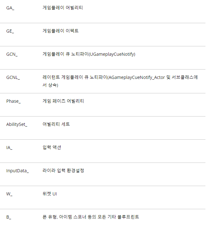 블루프린트 애셋 명명 규칙