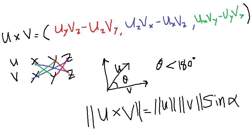 외적 : 두 벡터에 수직인 벡터를 출력