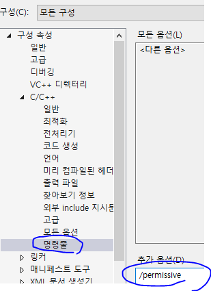 추가 옵션에 /permissive를 적어주면 해결된다.