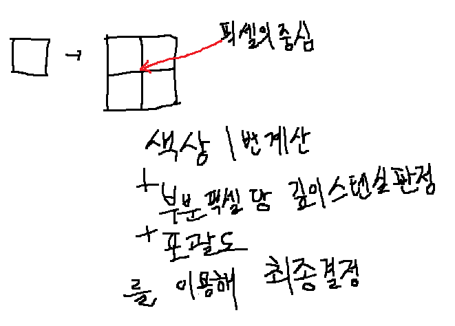 4개의 부분픽셀의 색상을 평균낸 것이 결과 픽셀이 됨