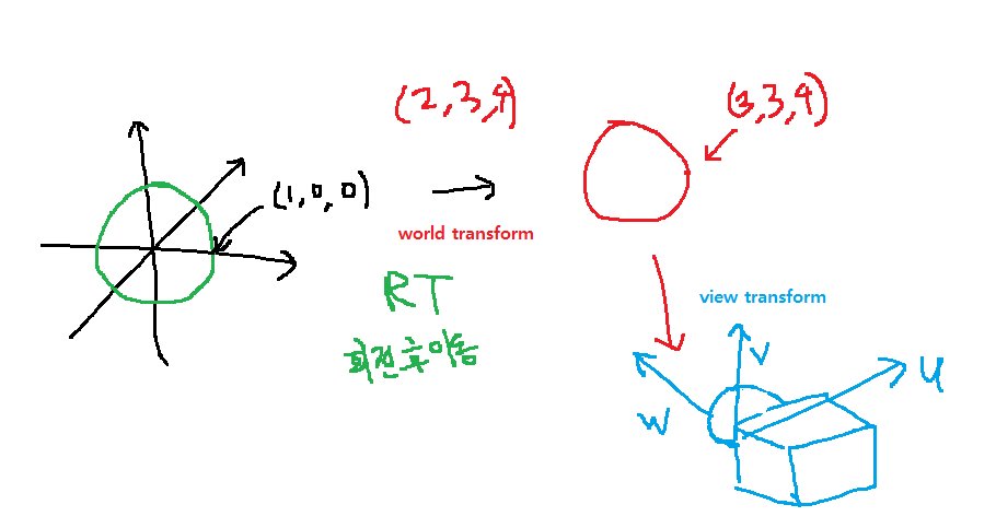 world transform, view transform, 투영 변환 진행됨
