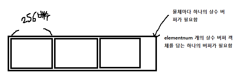 하드웨어가 256 * n 바이트 오프셋에서 시작하는 256 * n 바이트 길이의 상수 자료만 볼 수 있기 때문에 상수 버퍼의 원소는 256바이트의 배수여야 한다.