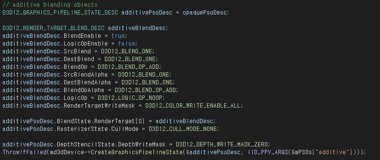 ㄴ 깊이 버퍼 쓰기(기록) 활성화 여부 (비활성화 하면 깊이 판정은 일어나지만 깊이 버퍼에 쓰는 것은 안됨)