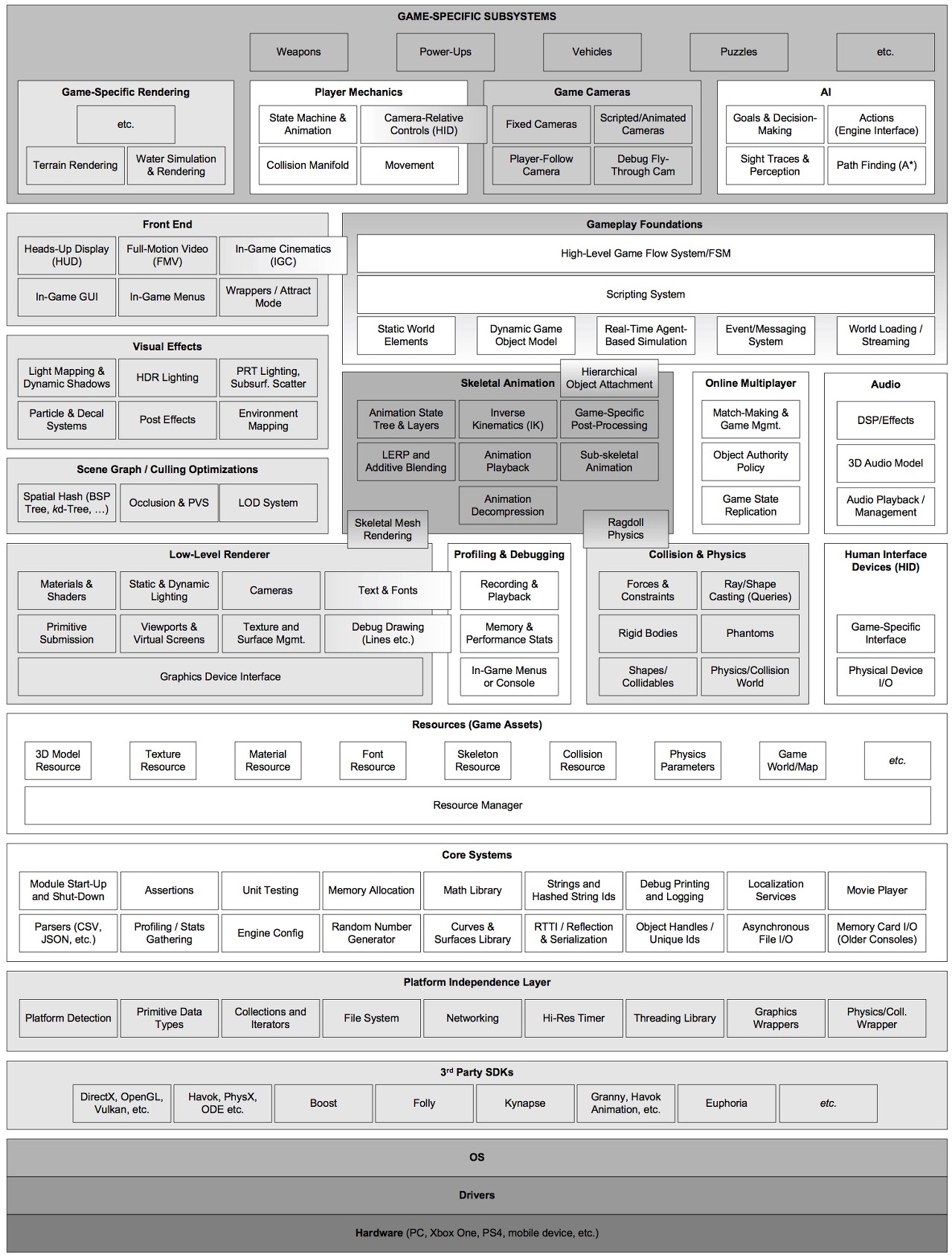 대부분 게임 엔진은 적어도 한 개 이상의 하드웨어 플랫폼에서 동작해야 하기 때문에 (더 넓은 시장을 확보하기 위해)